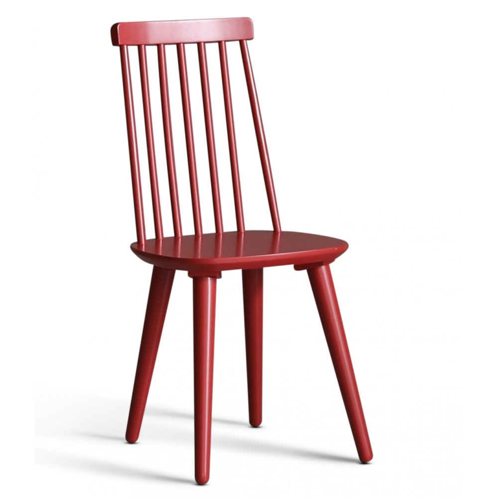 Dalsland matgrupp med stort och bra matbord med toppskiva i oljad ek och vitlackat underrede. Dalsland pinnstolar i en läcker röd lack (RAL3003)