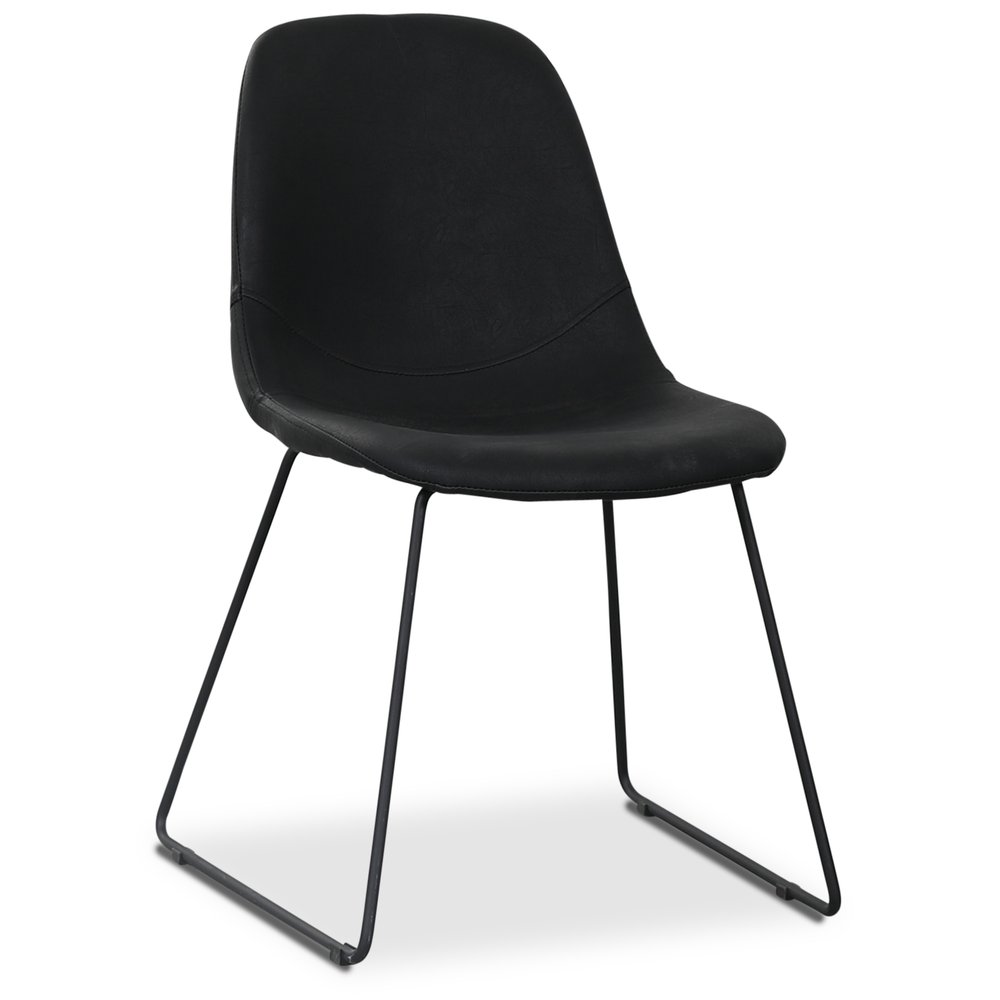 Stilfulla stolar med svarta pulverlackade metallben. Klädsel i ett snyggt och starkt svart läderliknande PU.