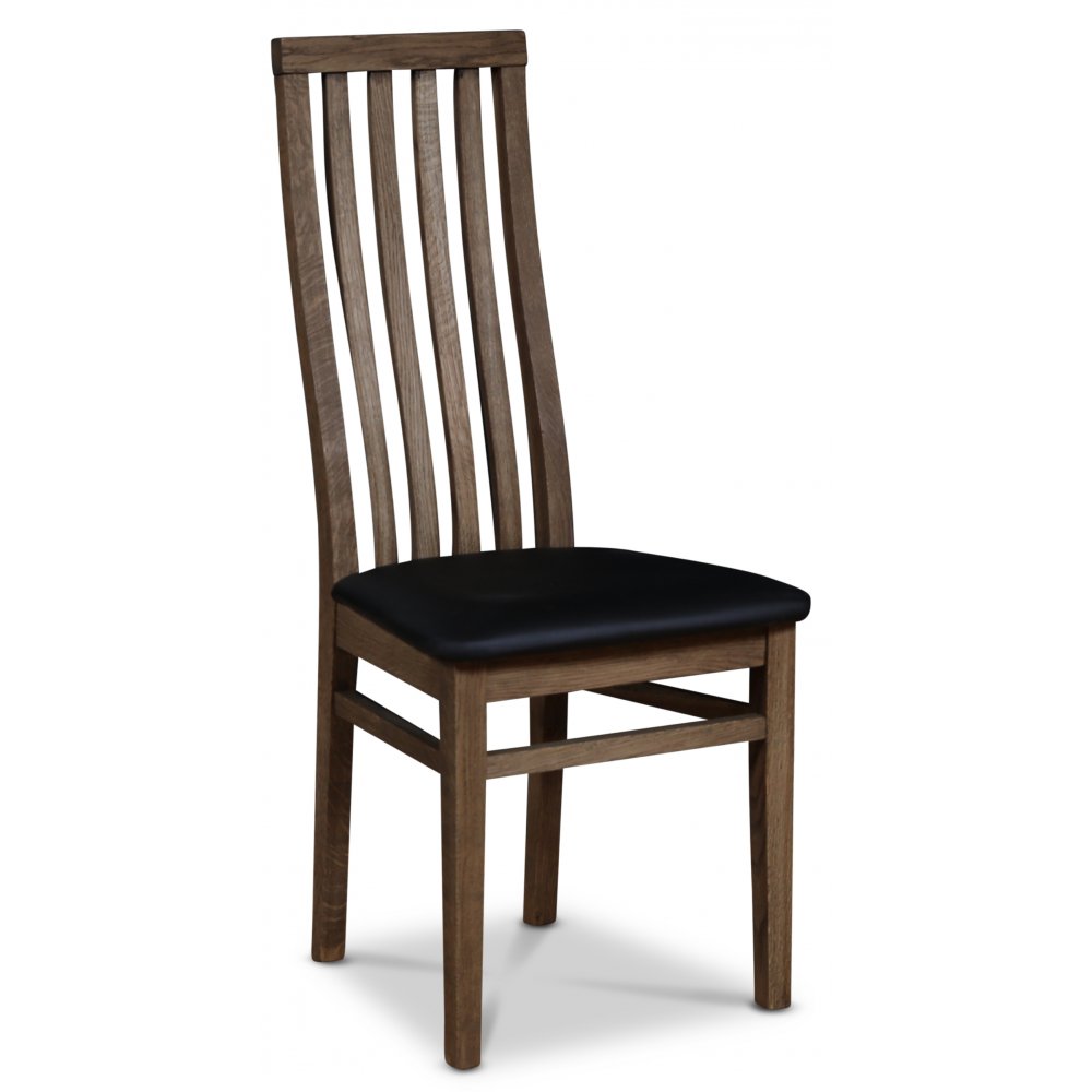 Inklusive 4 st Alaska matstolar med stomme av europeisk brunoljad ek, högt bekvämt ryggstöd, samt sits av svart ecoläder.