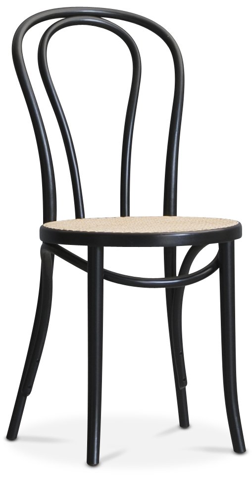 Svartlackad stol No18 med beige rotting sits. Levereras monterad. Klassisk designikon. Passar både till modern inredning som retro och vintage.