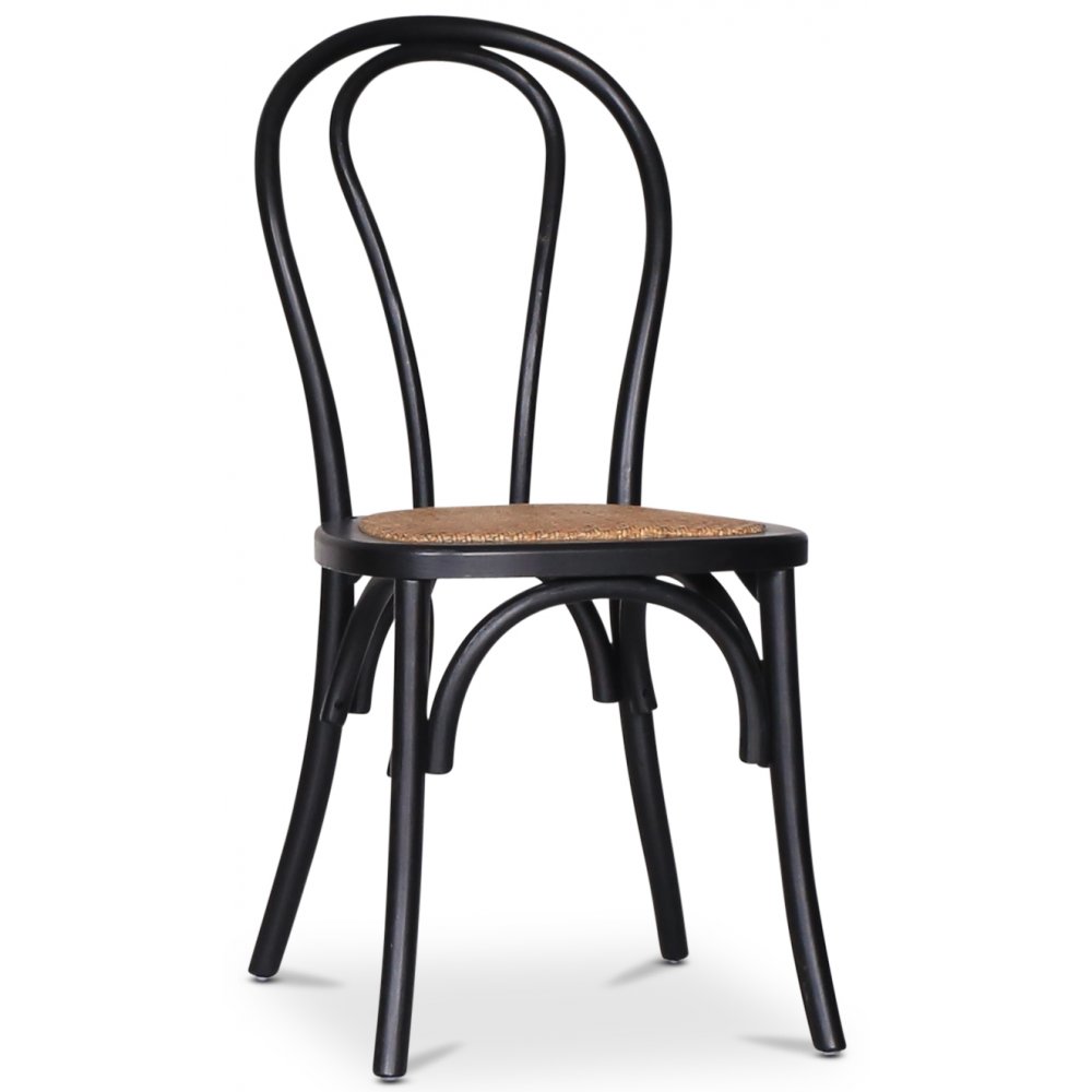 Matgrupp innehållande Omni matbord, serie runda matbord med toppskiva av ekfaner i olika utförande med matchande ben. Ett stilrent och nätt matbord. Ingår gör även 4 st Tony stolar, stomme av svart massiv bok och sits av antikfärgad rotting. Teknik för att böja träet har använts i designen. En stilig stol i neutrala färger, kombinera gärna med ett passande matbord.