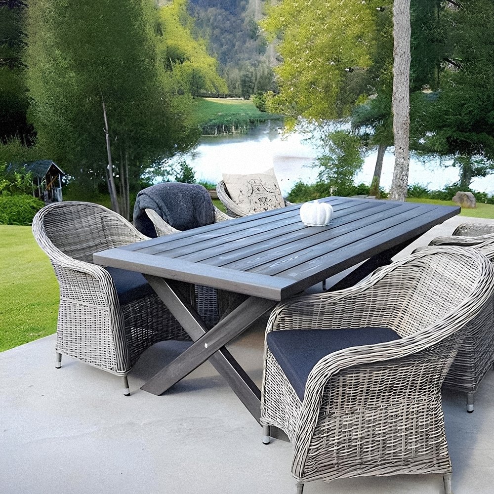 Inklusive 6 st Mercury fåtöljer i matchande grå konstrotting med sittdynor. Matgruppen passar perfekt på altanen, uteplatsen och i uterummet.