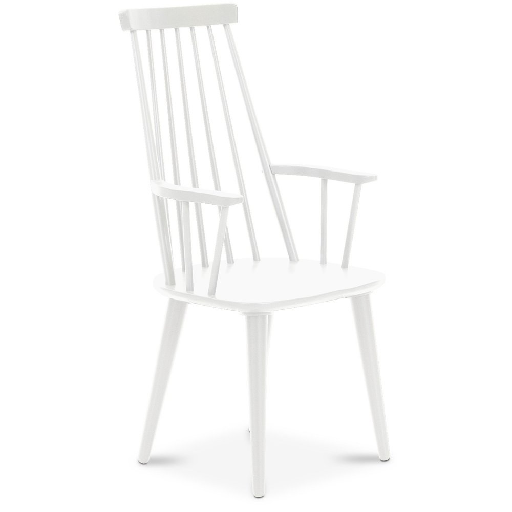 Matgrupp från Skånska Möbelhuset, Klassiskt runt matbord Rosvik 120 cm diameter i grålackat trä. Fyra stycken vita Dalsland Pinnstolar med armstöd!
