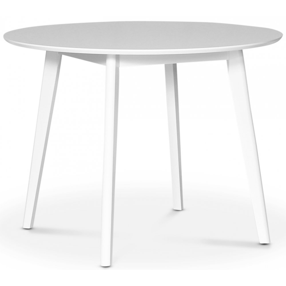 Sandhamn matgrupp Klassiskt utförande. Stilrent runt matbord med vitlackade ben och bordsskiva.