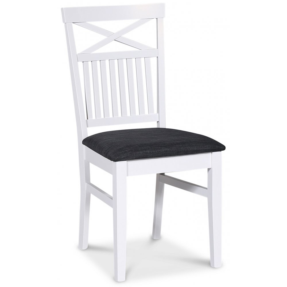 Skagen matgrupp; matbord 160/210x90 cm - Vit / brunoljad ek med 6 st Skagen stolar med kryss i ryggen och grå tygsits
