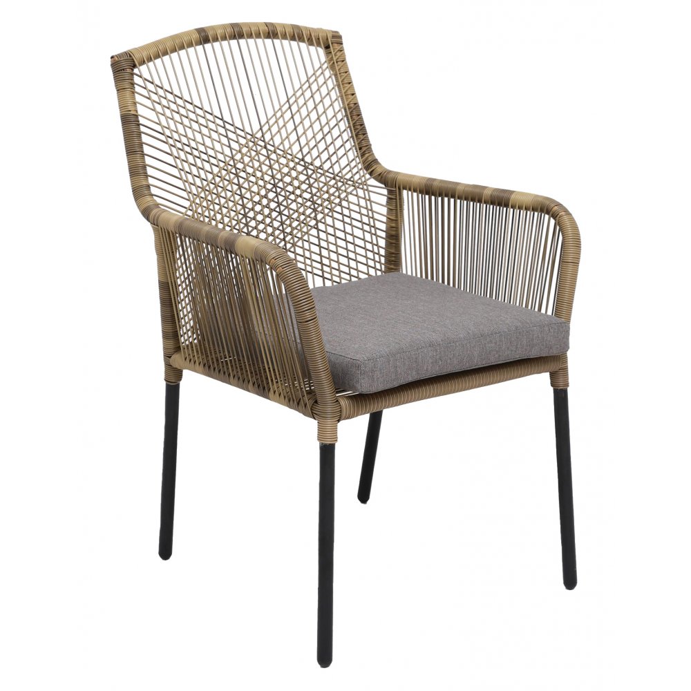 Scottsdale matgrupp för uteplatsen med ett rektangulärt robust matbord, tillsammans med Ystad karmstol med beige tvinnad konstrotting och en grå skön sittdyna. Bordet är tillverkad i svartlaserad furu vilket gör utegruppen väderbeständig och tålig för att klara uteplatsens miljö.