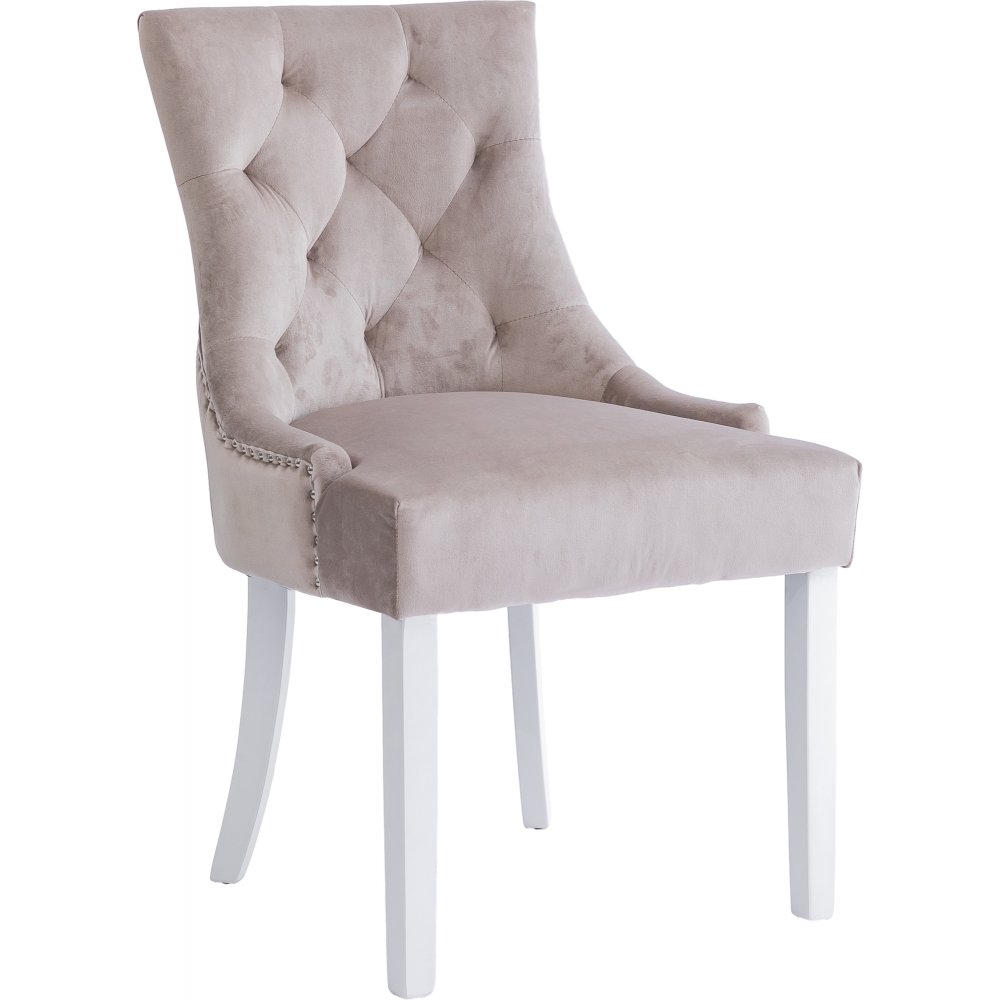 Inklusive 4 st Tuva matstolar i beige sammet med kromade nitar och ring-handtag i ryggen. Matstolaen har vitlackade träben. Denna serie stolar är en av Trendrums mest populära.